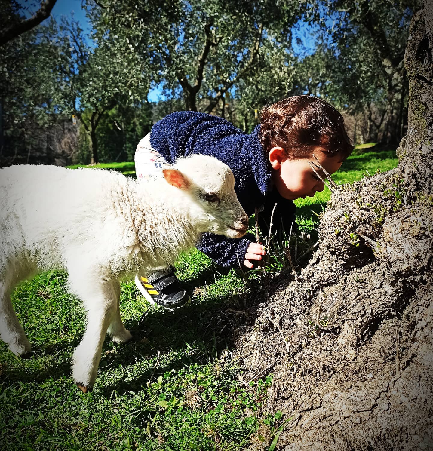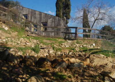 Abbiamo scelto il termine “Fattoria” per nostro progetto perché ci piaceva l’idea di un ambiente umano naturale, antico, spontaneamente collegato con Madre Terra, come l’agricoltura è sempre stata. Legame che si è perso completamente nell’ agricoltura industriale. Non siamo un’azienda agricola, non siamo allevatori, non siamo agricoltori, non produciamo prodotti per la vendita ma cerchiamo di auto-produrci il cibo di cui abbiamo bisogno. Le produzioni principali sono vegetali, con un orto di circa 250 mq attivo in ogni stagione, un centinaio di alberi da frutto ed un altro centinaio di ulivi. Produciamo verdura, frutta, erbe aromatiche, funghi, olio extravergine di oliva e miele. Abbiamo anche animali domestici. Amiamo gli animali, ci piace prendercene cura e condividere con loro la terra in cui viviamo. Le pecore ci offrono servizio di pulizia dell’erba delle ramaglie di potatura, il fieno avanzato e la lana viene usata come pacciamatura nell’orto. Le nostre galline felici ci offrono le loro strepitose uova.