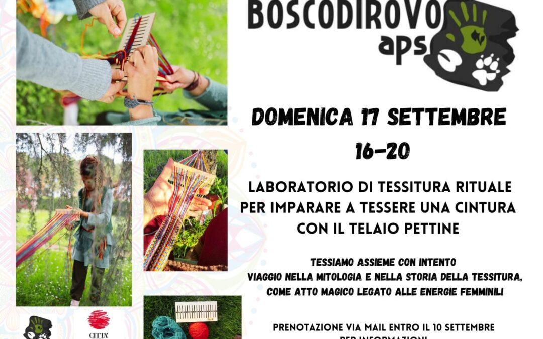 Si tratta di un laboratorio di tessitura rituale. Verrà a trovarci Margherita Sole che da quasi 10 anni realizza opere utilizzando questa antica arte.